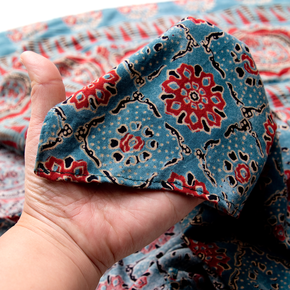 染め部分は、ハンドメイドのウッドブロックプリントにしか出せない、独特のムラがありとても雰囲気があります。色ムラや、にじみ具合、ボケ具合、全て一つ一つ異なる手仕事をご堪能ください。