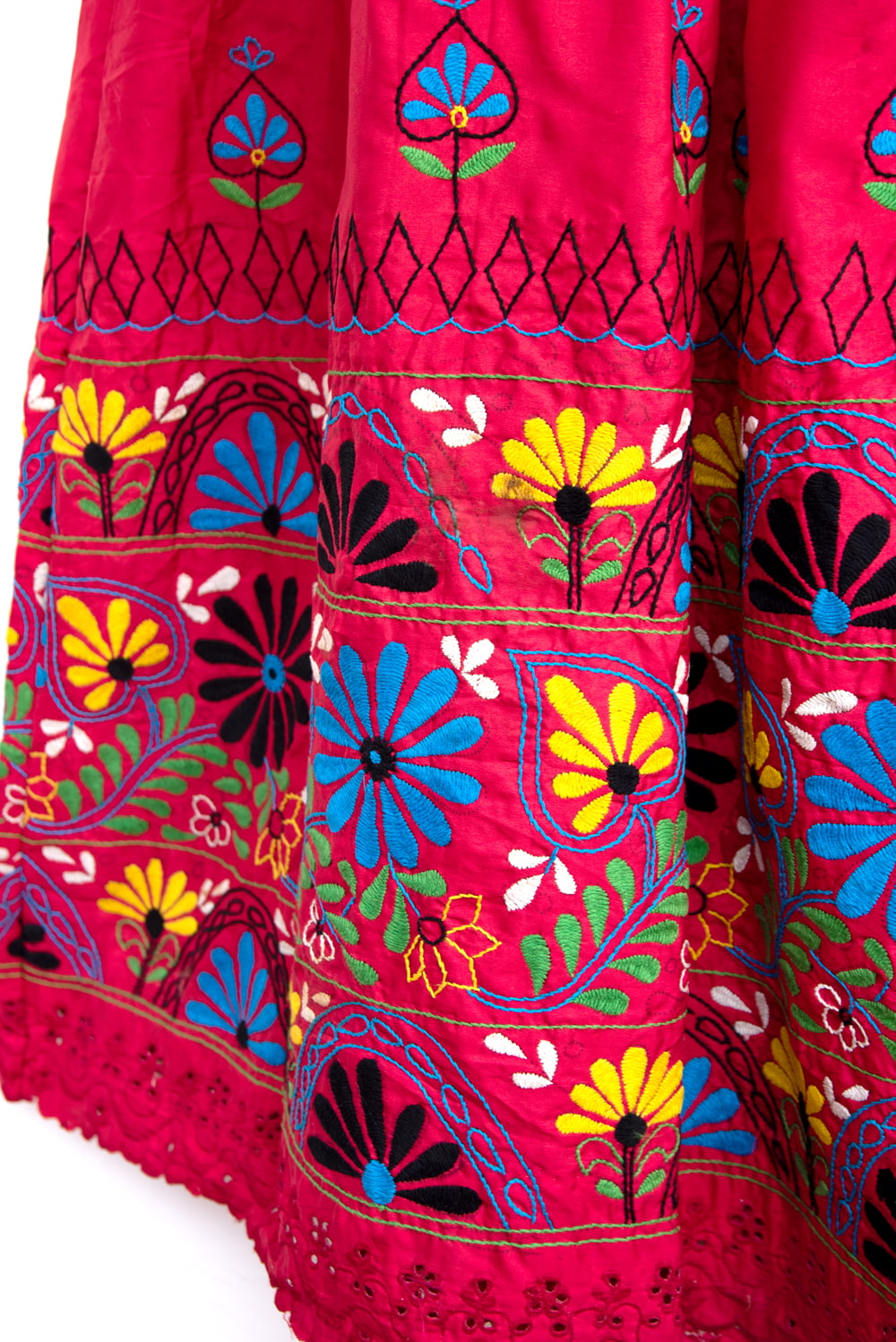 カッチ地方のトライバル刺繍 2WAYスカート レッド