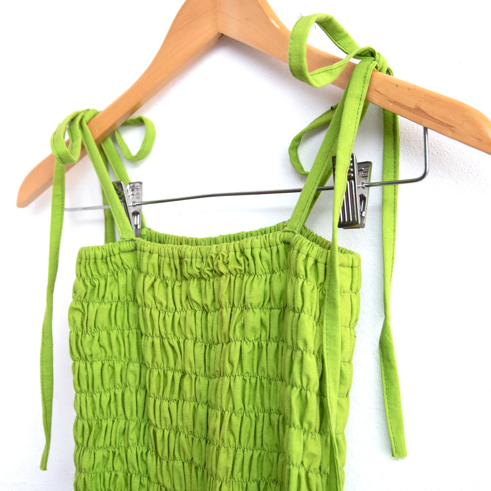 肩ひものワンピースデザインですので、そのまま結んでも、クロスに結んでも、中にしまってチューブトップとして着てもお楽しみいただけます。ゴムの部分を腰まで下ろせばロングスカートとしてもお楽しみ頂けます。その日の気分でお楽しみ下さい。■アンティーク布を使用しています
