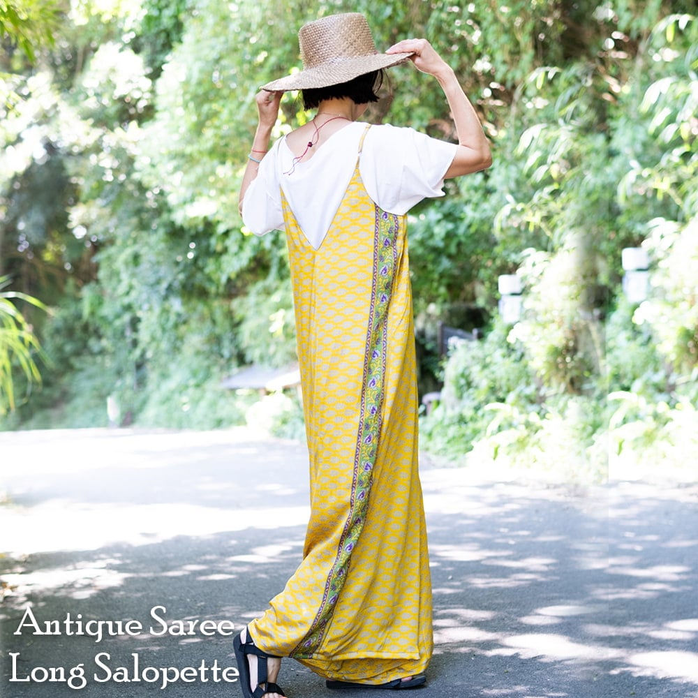 ストンとしたデザインが可愛い! アンティークサリーのロングサロペット
