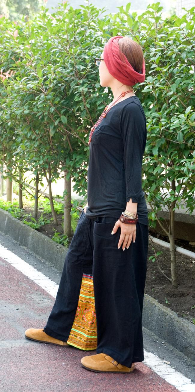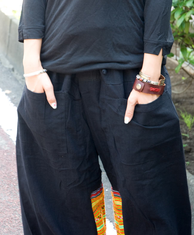 モン族刺繍のタイパンツ 【黒】