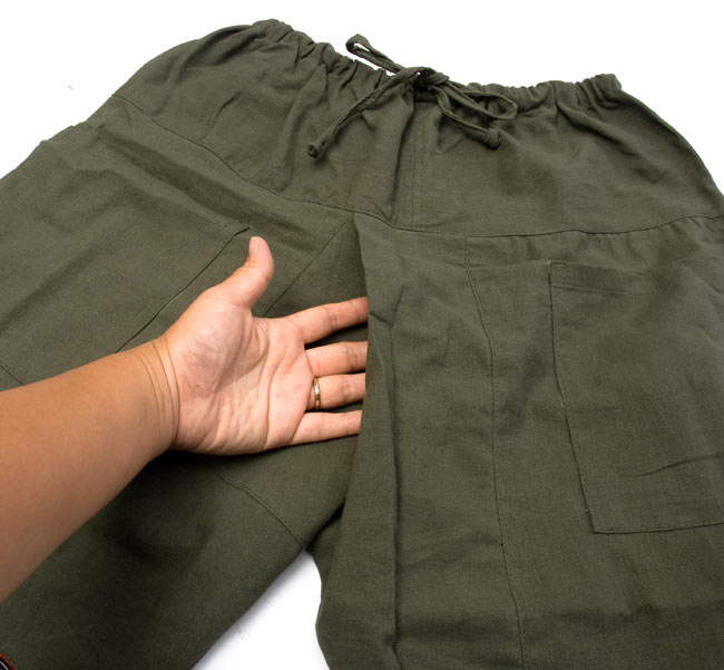 シンプルながら、モン族の刺繍がアクセントになったタイパンツです。日本人が好きそうなシンプルで、且つ、エスニックな雰囲気のあるものはないかな〜と作ってもらったティラキタオリジナル!