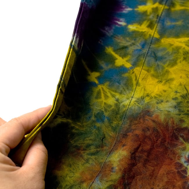 | おことわり | *コットン染め製品のため、色落ちする場合がございます。最初の数回は冷水で他のお洗濯ものと別にして洗ってください。 *縫製技術の関係で上記サイズは、一枚一枚、多少の誤差があります。また、タイダイ染めですのでお色見が1点1点異なります。ご理解の上、お選びください。 |