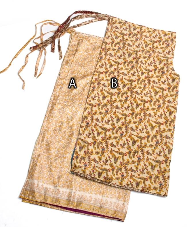光沢のある素材が華やかな印象を与えてくれるサリー生地。2枚仕立てのリバーシブルデザインとなっており、その日の気分で柄を選べるのは嬉しいポイント。華やかな印象にもなる生地なので、合わせるものによって、いろいろな場面でご活用いただけます。なお、こちらのパンツですが、リサイクルのサリーを使用しておりますので、完全に一品物となっております。柄は3枚めの写真を参考にアソートでお送りいたします。写真と異なる商品が届く場合もございますのでご了承ください。