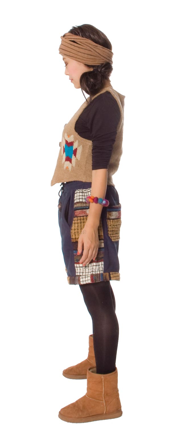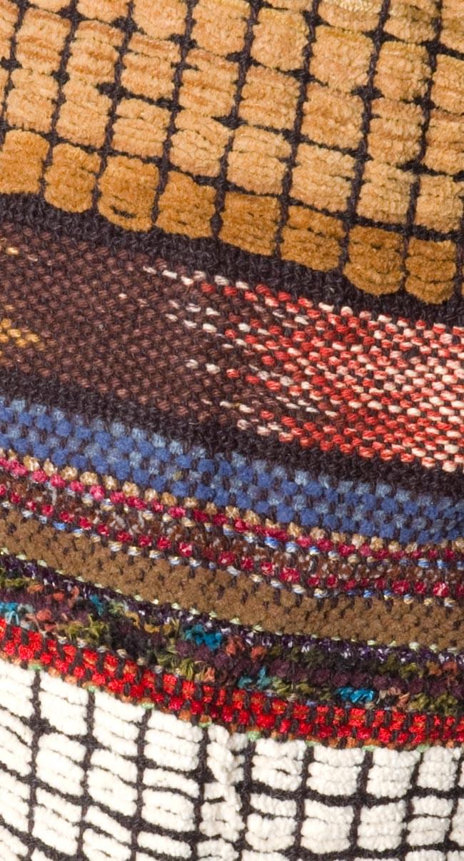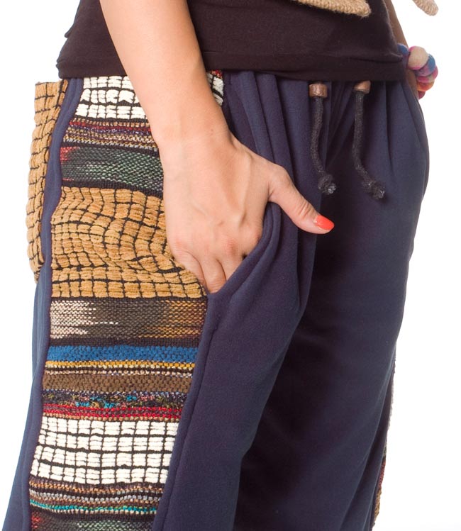サイドやポケットにはネパールらしいゲリデザインのコーデュロイ織りで個性的!色の組み合わせもエスニックらしく、心地良い色合わせです。