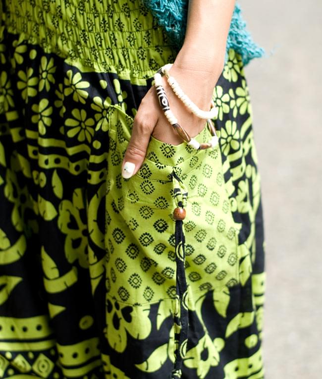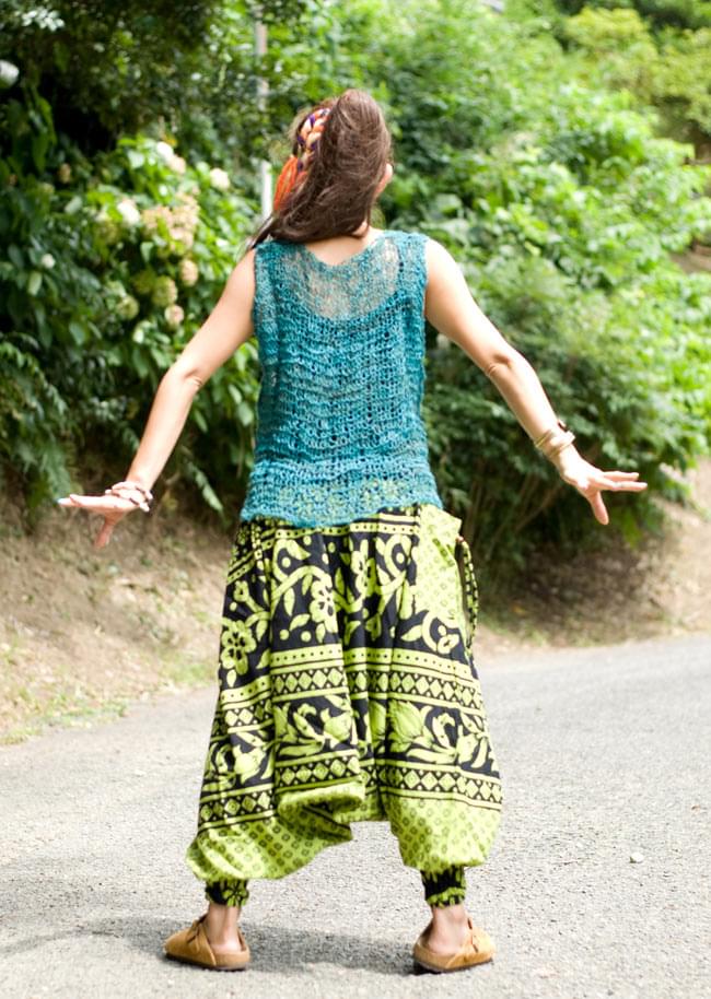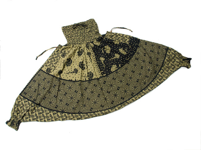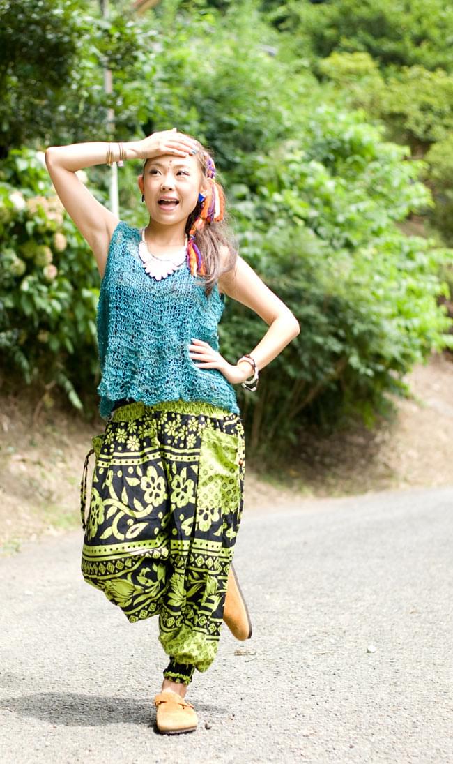 派手好きにはたまらない!ぞうさんとお花柄が散りばめられたモモンガパンツがネパールから届きました。広げるとマントのような面白い形が特徴のパンツです。布に包まれているような不思議な履き心地はとってもラクチン!病みつきになっちゃいます。■コットン素材が気持ちいい!