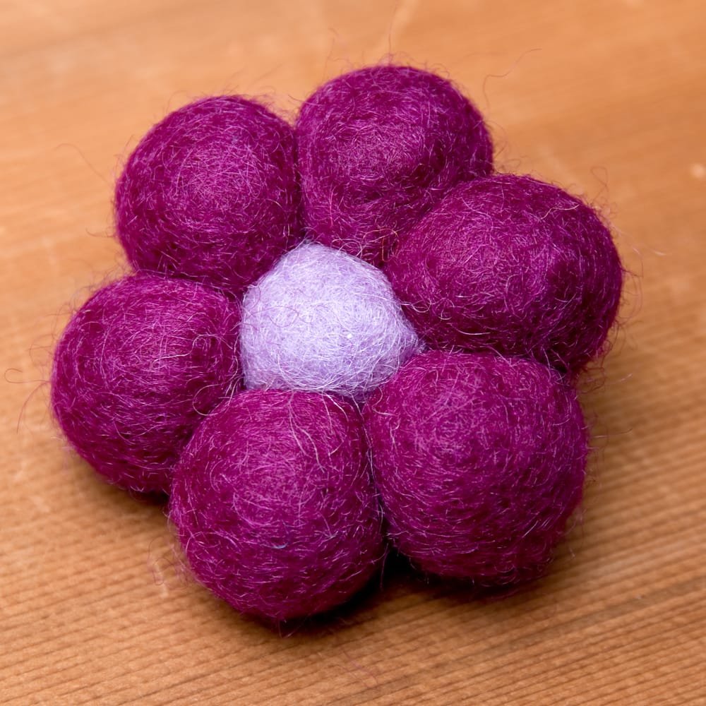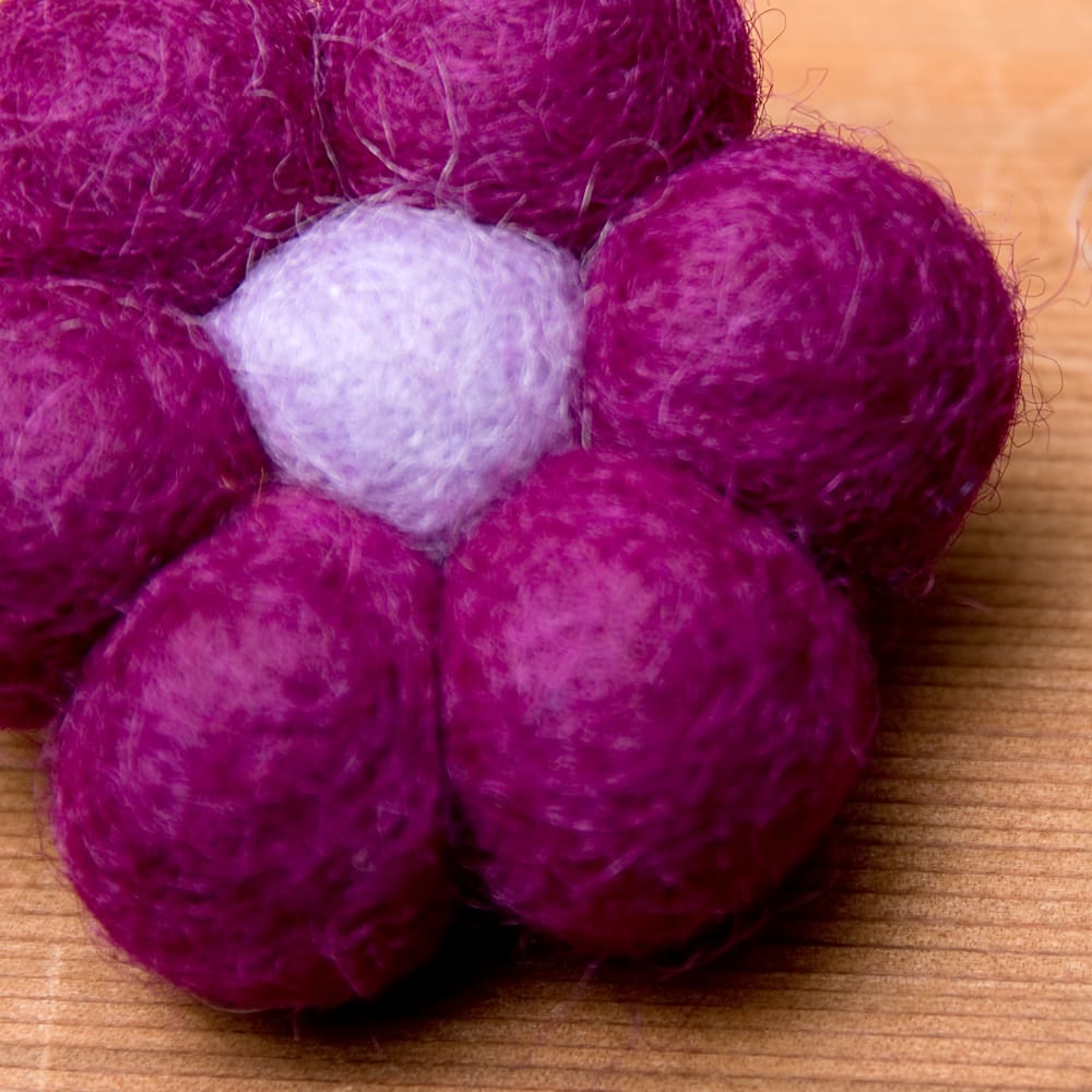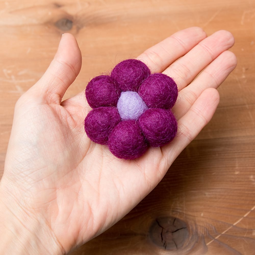 ティラキタスタッフがネパールの工場で手作りフェルト製品の生産工程を見てきました!! こちらはフェルトのポーチを作っているところの動画です。詳しい説明は上記のリンク先をご覧ください| サイズ | お花部分の大きさ:約5cm×約5cm |
