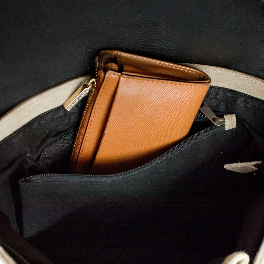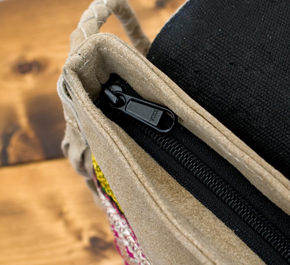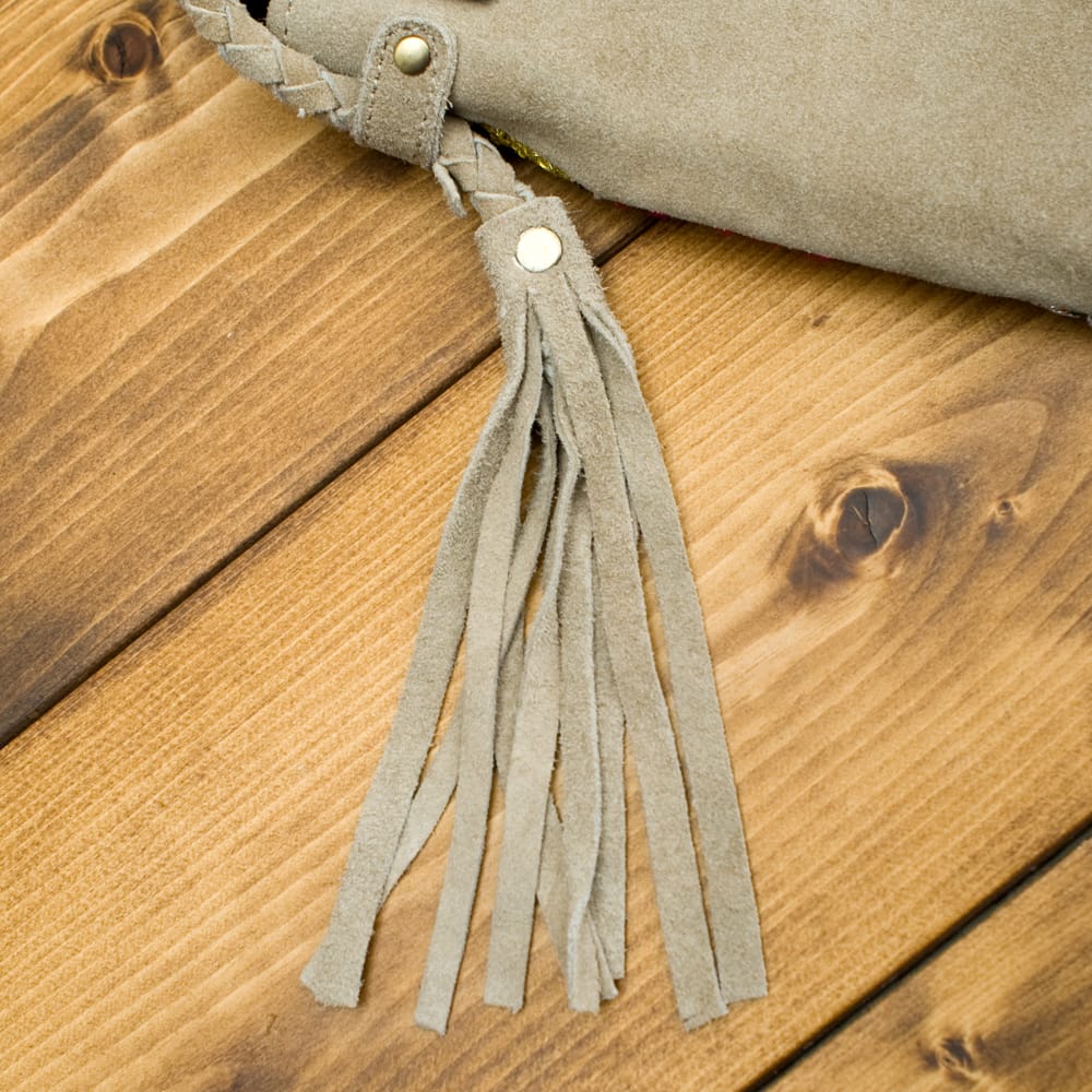 ストラップはスウェード生地を編みこんで作られています。