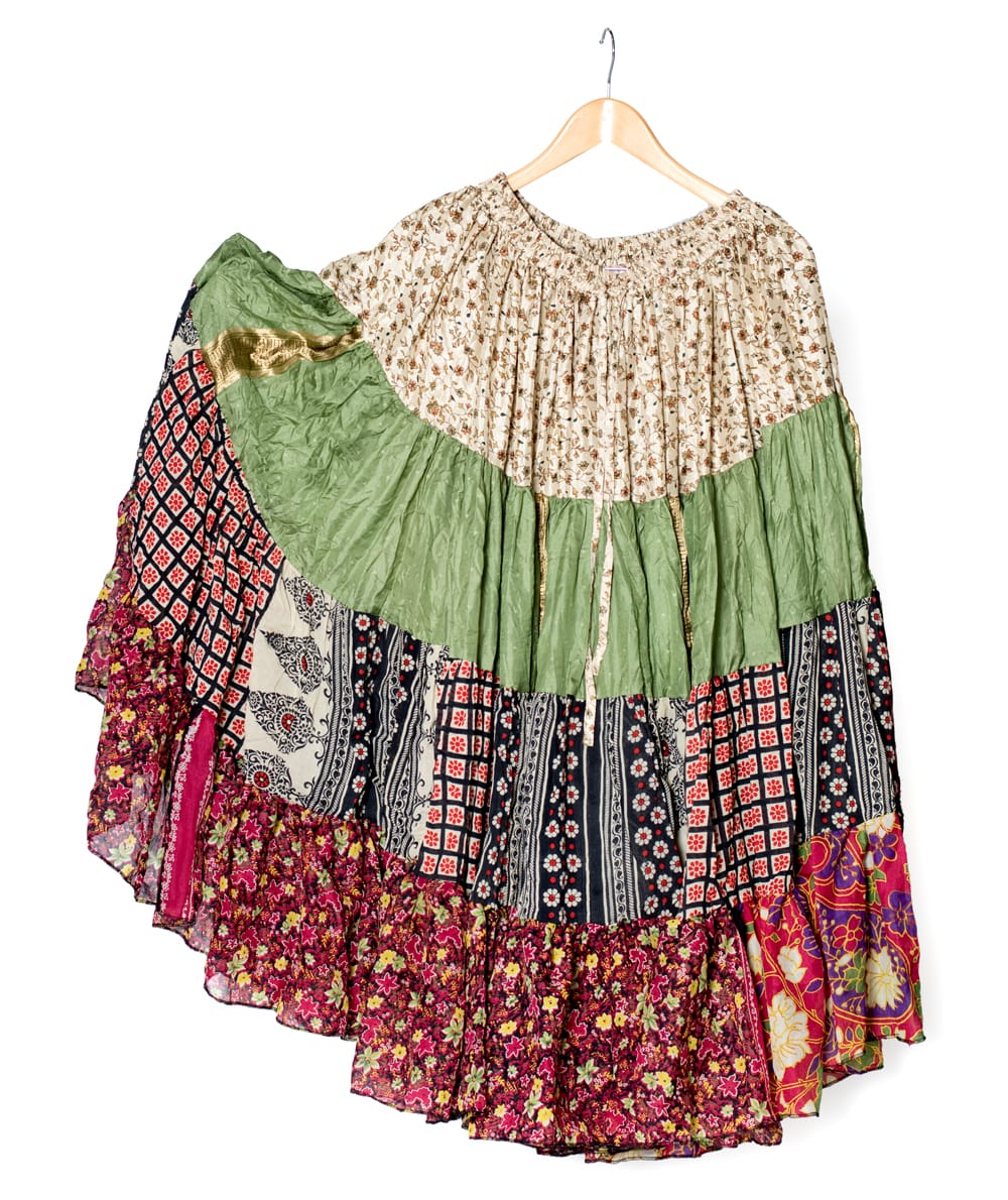 25ヤード アンティークサリーのジプシーパッチワークスカート4段【90cm】 通販店