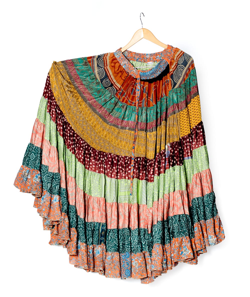 25ヤード アンティークサリーのジプシーパッチワークスカート8段(96cm)の類似商品