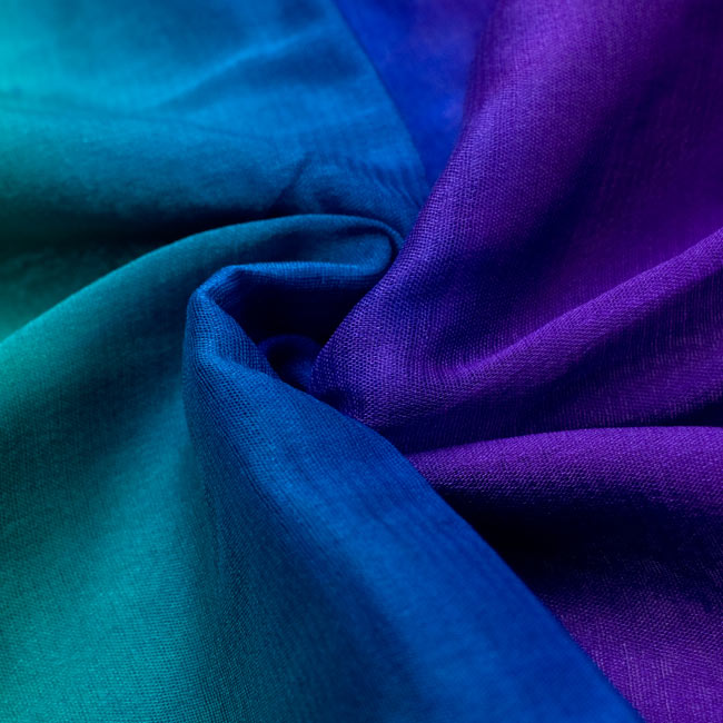 パープルの色味は赤紫でパンツはシャーリング加工なのでチクチクしそうだと思いましたが履いてみるとチクチクせず大丈夫でした。パンツの方は夏の普段のお出かけにも履けるので、大きめのウエストでヒモで縛るのですが、ゴムに付け替えようと思います。ストールも鏡隠しの布としても使えて満足です。