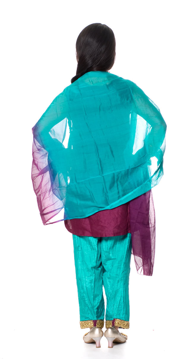 パンジャビ・ドレス3点セット - えんじ×エメラルド