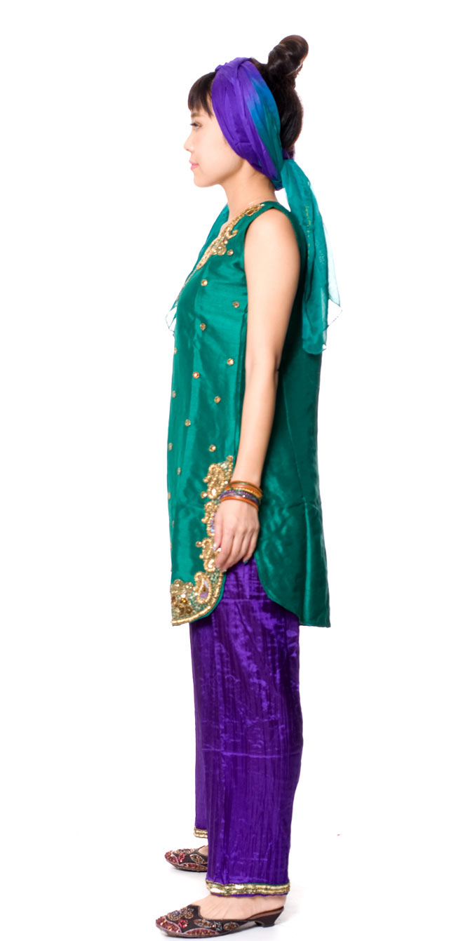 パンジャビ・ドレス3点セット - グリーンの商品写真 2枚目 横から見た姿です。