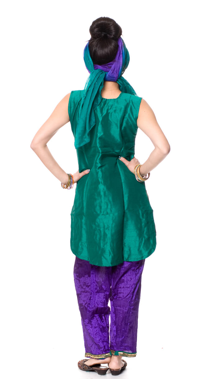 パンジャビ・ドレス3点セット - グリーンの商品写真 3枚目 後ろ姿です。