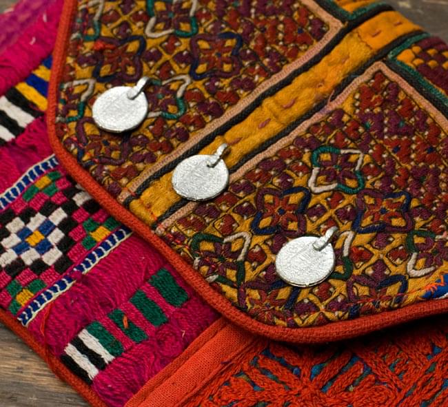 こちらのバッグは古布を1枚1枚配置し、パッチワークのようにつなぎ合わせたバッグです。色鮮やかなカラフルな布地に、ビーズやミラーワークがほどこされていたりと、存在感たっぷりのバッグです。古布が1枚1枚職人の手によって合わさり、バッグに生まれ変わる・・・その配色は世界にひとつだけ。まさにどのバッグにもオンリーワンの特別感があります。■古布
