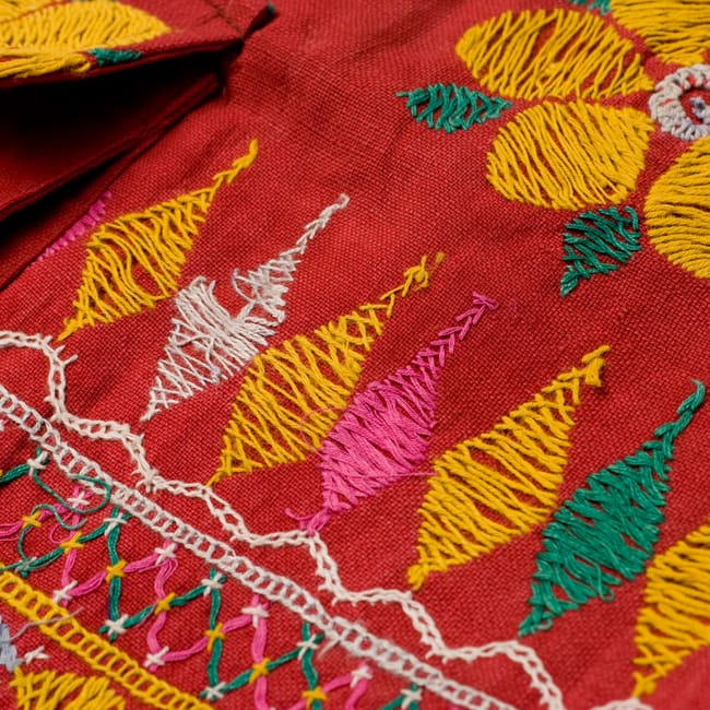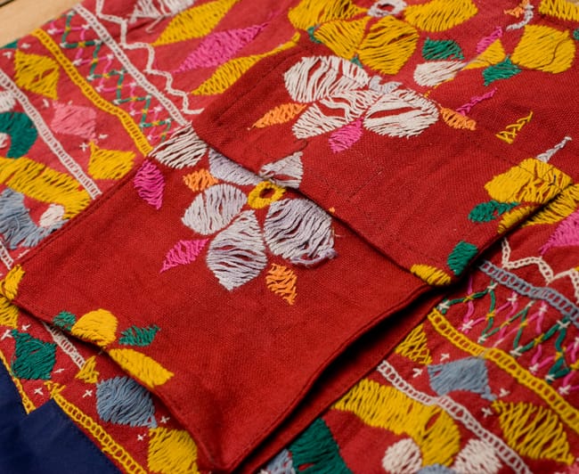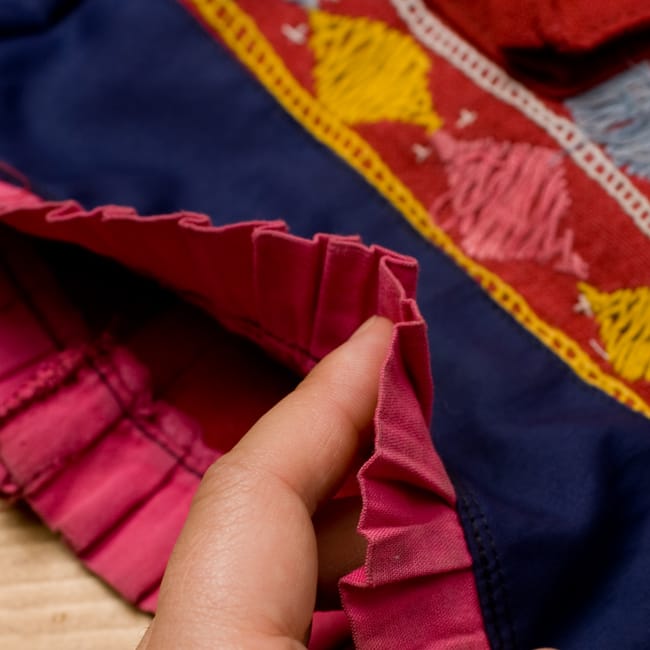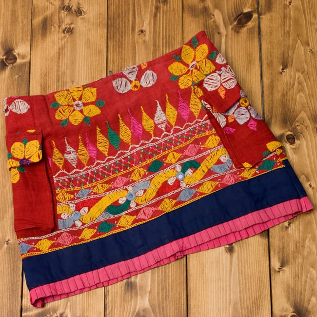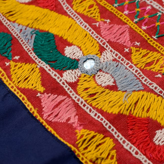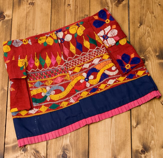 鮮やかな布地にたっぷりの刺繍が目を引くスカートは、グジャラート州のカッチ(Kutch)地方でつくられました。カッチ刺繍のオールドファブリックを使用した日本にはないデザインと、鮮やかな色の組み合わせがとても美しいです。少数民族の女性が一つ一つ丁寧に手刺繍にて作ったスカートは世界で1点だけ。