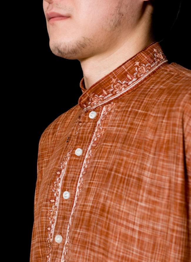 〔各色あり〕比翼仕立て 更紗刺繍入り クルタ・パジャマ上下セット インドの男性民族衣装