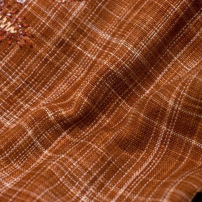クルタ全体にこまかい地模様が織り出されています。地図記号の田んぼマークの繰り返しのような感じです。凹凸はうっすらで、刺繍とのバランスが絶妙です。ポケットは着た時の右側のみにありました。深さは14センチで使いやすい大きさです。
