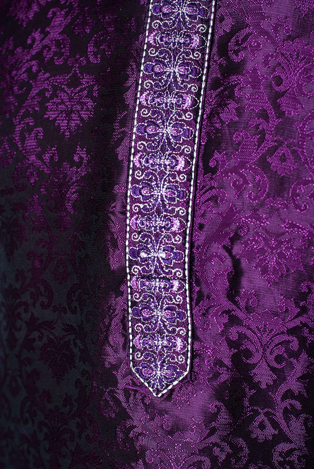クルタ・パジャマ - パープル(刺繍が三角)【光沢生地】