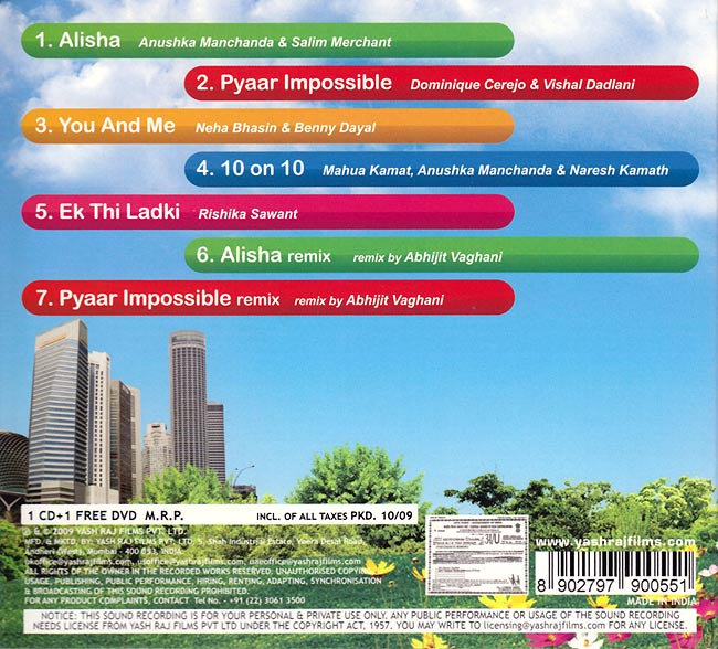 このCDにはインドのCDにしては珍しく、10ページ程度のフルカラーのブックレットが付き、YashRaj Films社の映画のダンスシーンを収録した無料のオマケDVDも付いています。このお値段でDVDも、CDも楽しめるなんてとってもお得ですね。