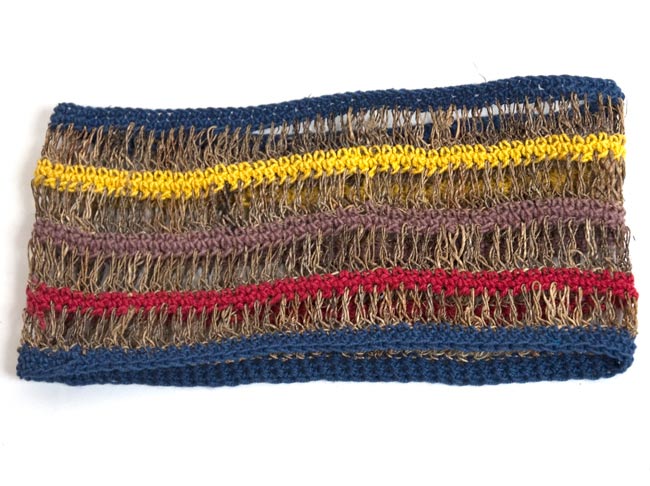 部分拡大してみました。ヒマラヤのワイルドヘンプを手編みしてあるのがよく判ります