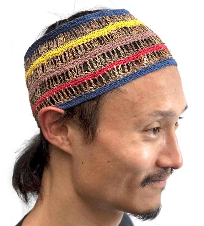 このヘアバンドは、ネパールの人たちがそのヘンプの糸を使って一つ一つ、手で作っていきました。自然素材ならではの色合いと、やさしい風合いが魅力的ですね。