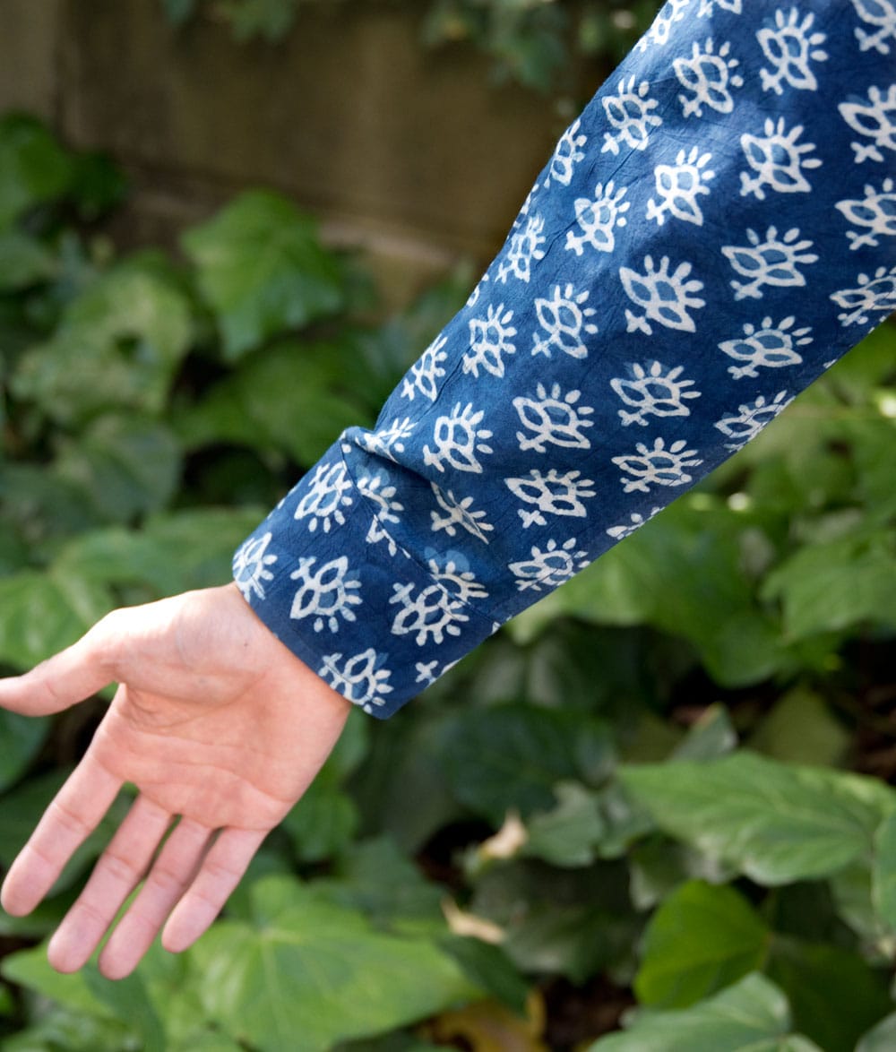 藍染部分には、ハンドメイドのウッドブロックプリントにしか出せない、独特のムラがありとても雰囲気があります。