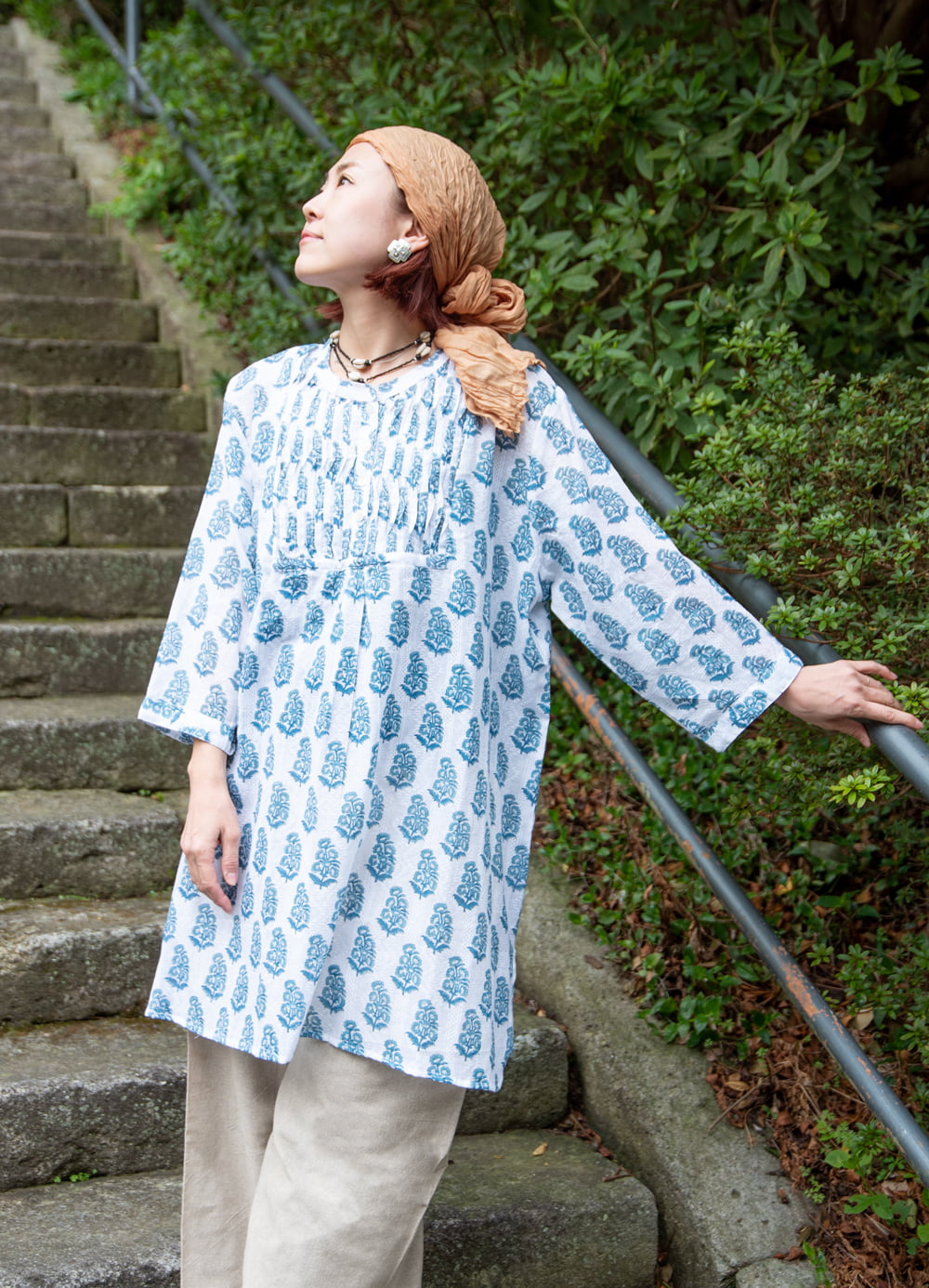 ウッドブロックのふんわりコットンチュニック