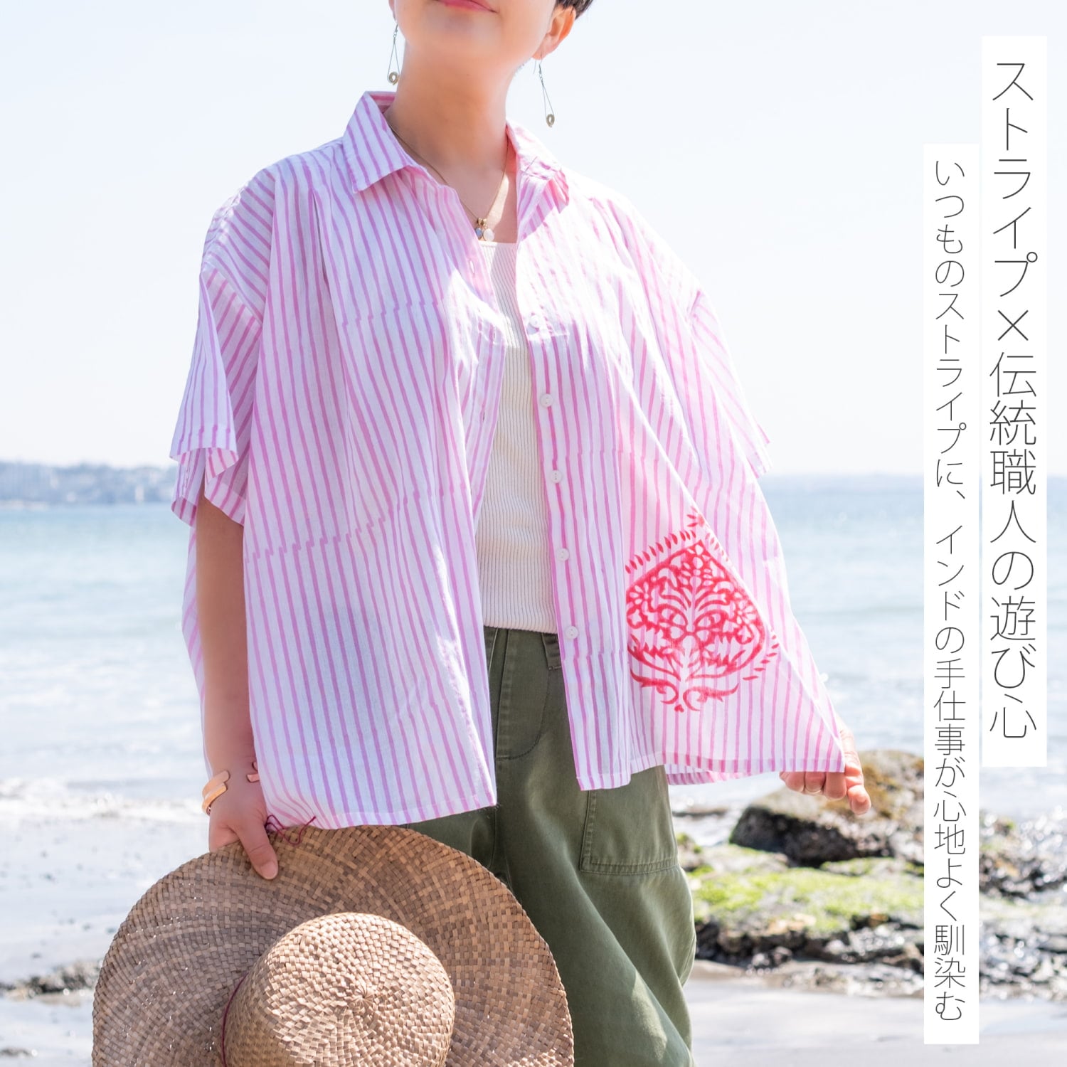いつものストライプに、インドの手仕事が心地よく馴染む