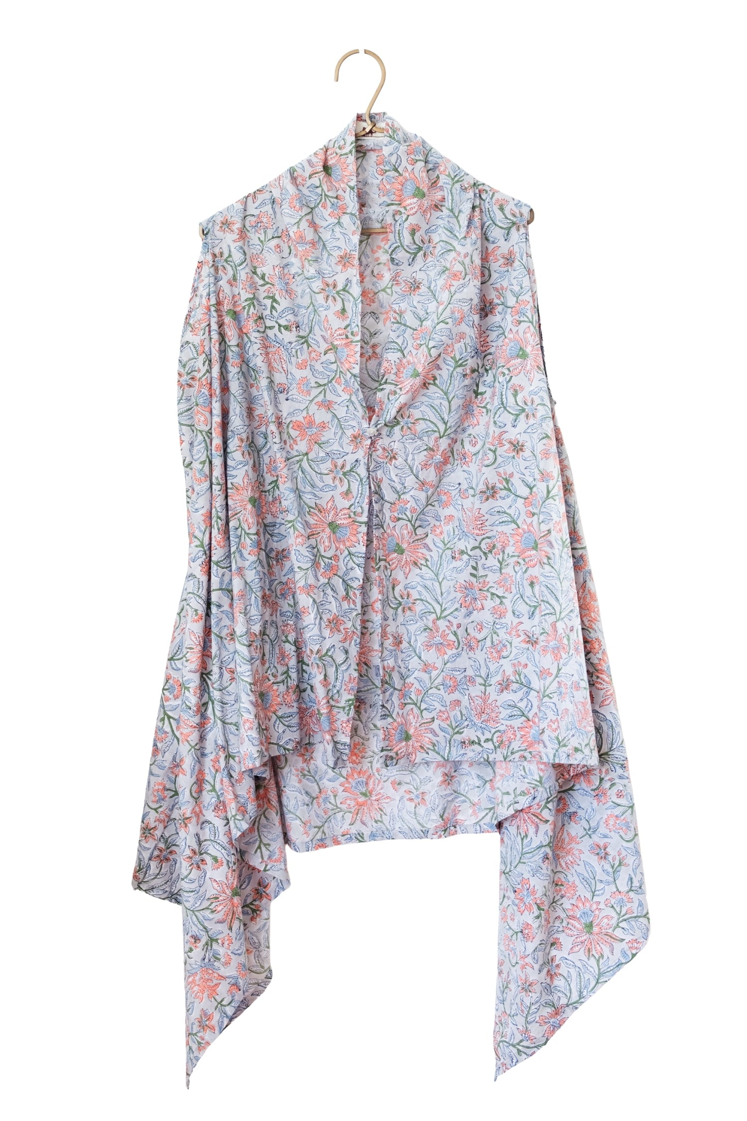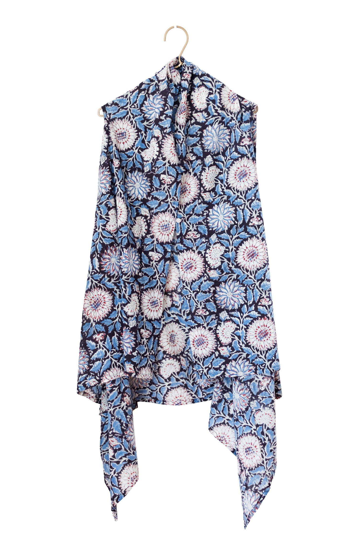 インドの伝統技法「ウッドブロックプリント(木版染め)」を贅沢に使用したハンドメイドの温もり溢れるジレが届きました。