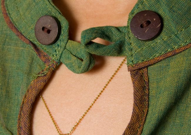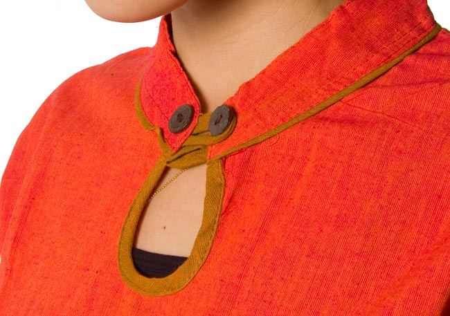 肌触りが心地よいコットンの半袖シャツがインドからやって来ました。襟元や袖口にほどこされたパイピングと生地の色のコントラストも個性的で素敵。カジュアルに着やすい一品です。■涼しくて暑い季節に最適!