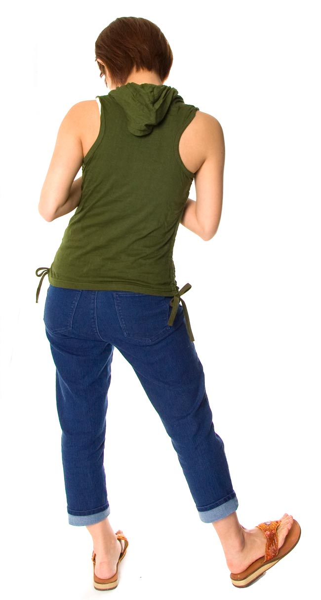 タンクトップ+パーカーという珍しい取り合わせに惹かれました。素材がコットンなので汗をよく吸ってくれますし、サイドの紐で丈調整が出来るのも素敵です。色も画像通りでした。ゆったりパンツやロングスカートと合わせて楽しんで使っていきたいと思います。