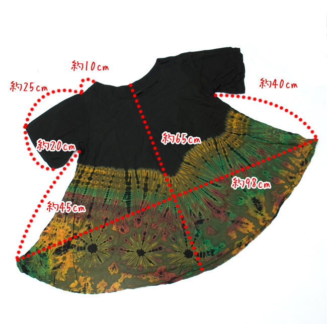 タイダイ染めの半袖シャツがタイから届きました。若干フレアになっているゆったりデザイン。すそが斜めにカットされているので、個性的なシルエットになります。細身のパンツに合わせたり、タイパンツに合わせたり、ロングスカートと合わせてもエスニック度UPしますよ。
