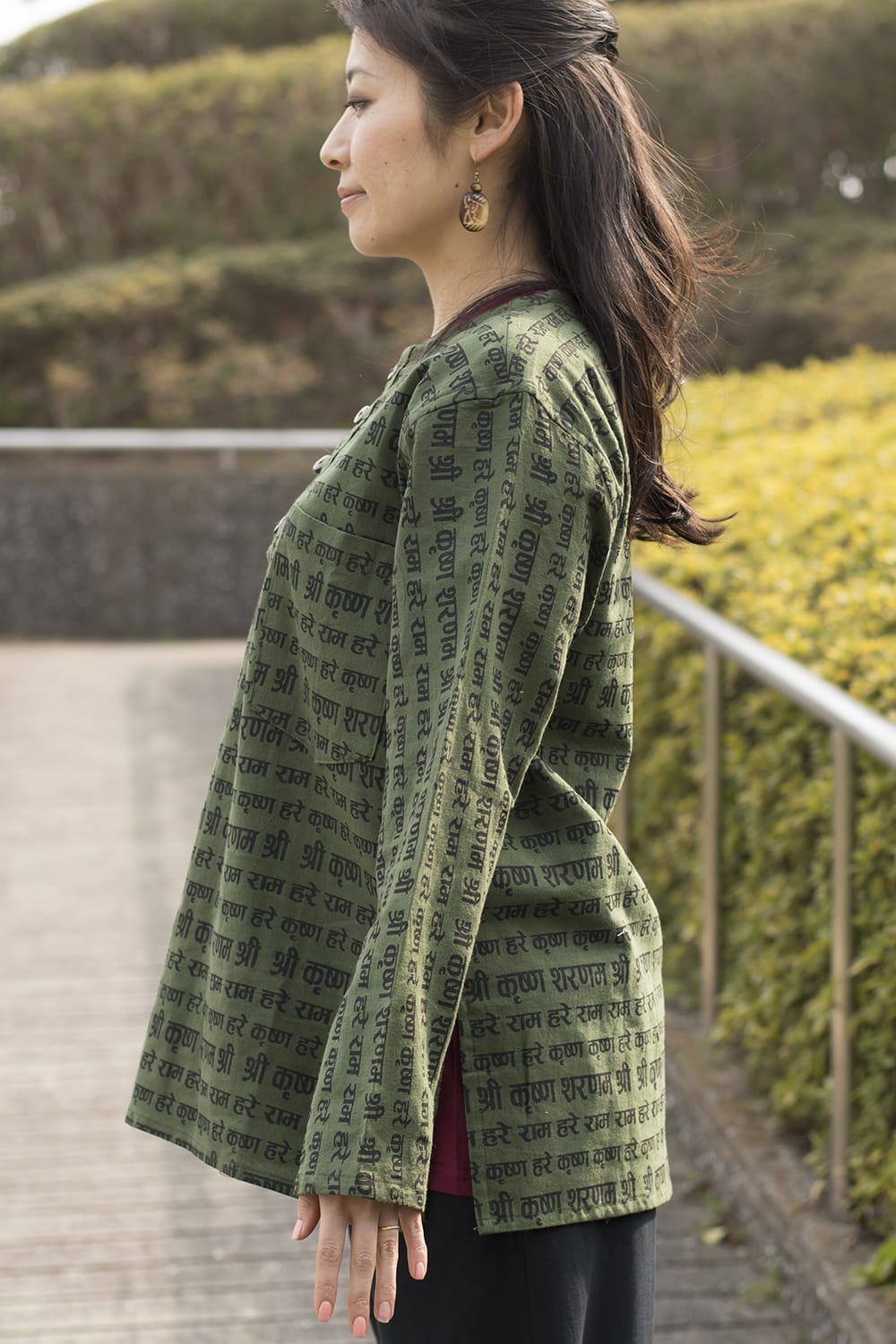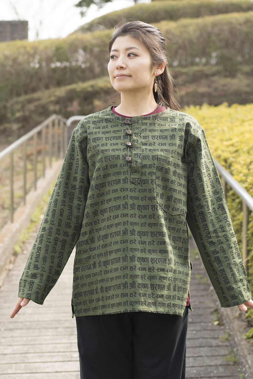 意外とありそうでないのが、マントラの服。ティラキタ店さんで見かけまして、早速色違いを購入しました。またボトムなどがありましたら購入したいと思います。長袖ですが、夏場でも日除けになって涼しく着られると思います。お気に入りの服となりました。