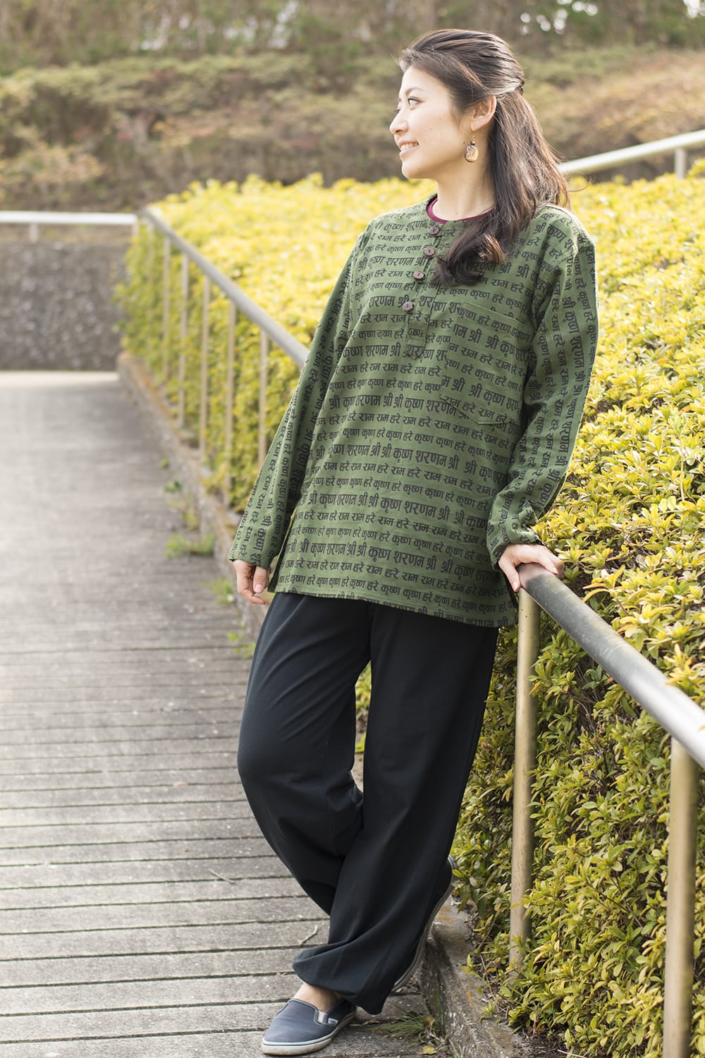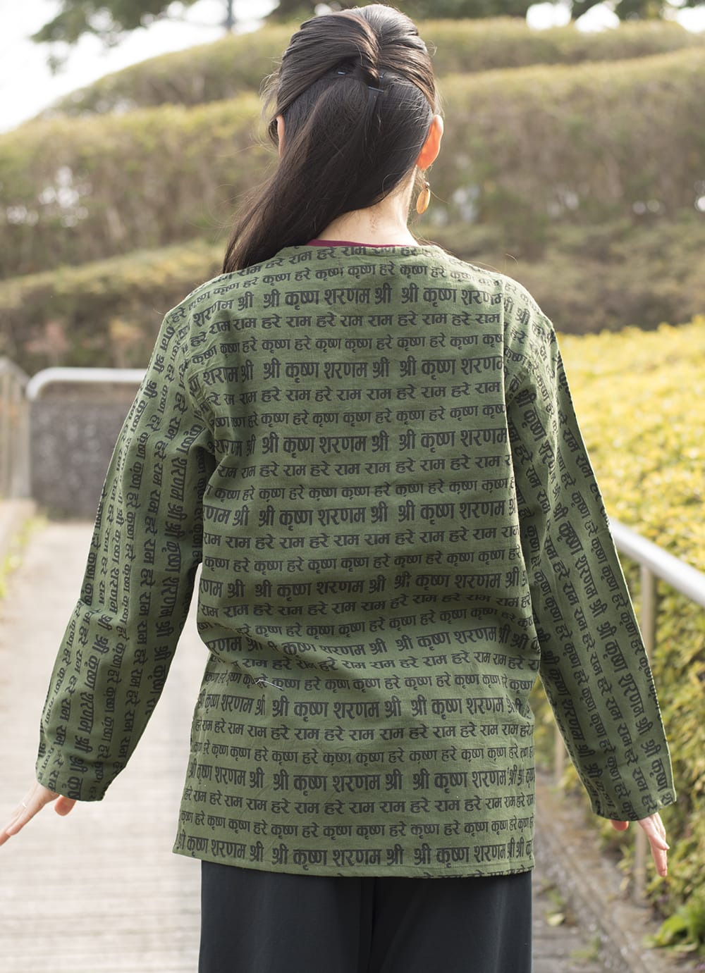 コットンなので通気性に富んでおり、暑い季節にぴったりの一枚。普段着としてゆるく着れますよ。試着したティラキタスタッフもお気に入りの1枚となりました。男女問わずお楽しみいただける便利な1枚です。シャツに描かれているマントラは、クリシュナ神を称えるもの。数多くの愛を集めた、ロマンティックな神様です。| ブランド | TIRAKITA ( ティラキタ ) |