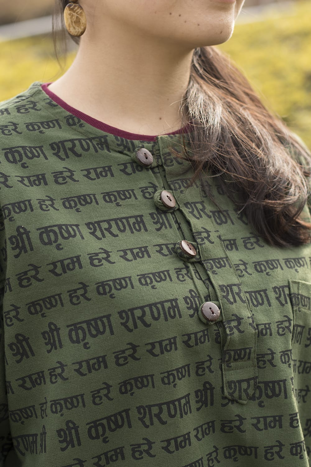 クリシュナマントラのボタンクルタ - グリーン