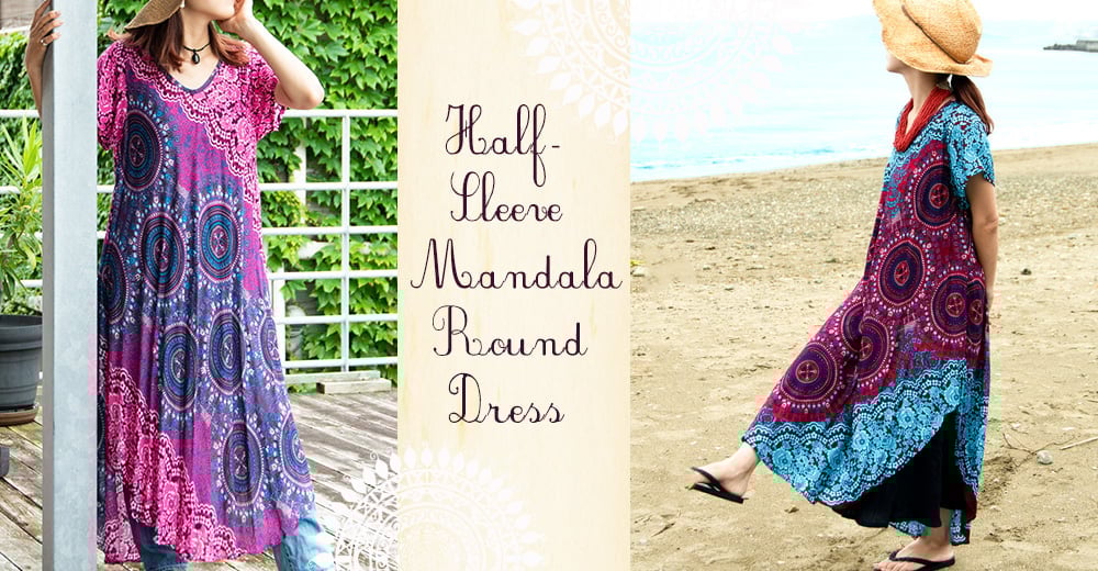 マンダラプリントのラウンドカットワンピース |