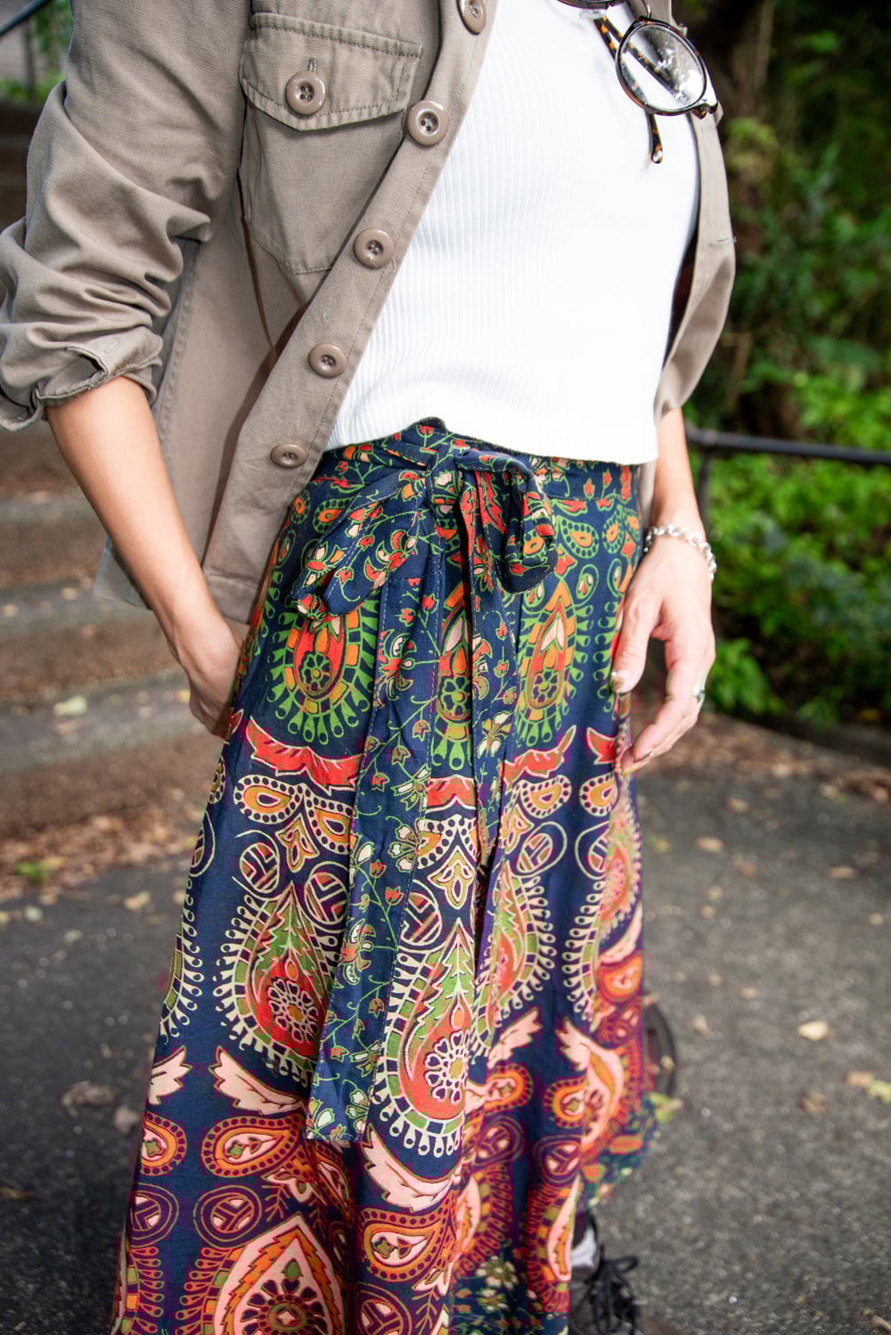 インド伝統柄が美しい コットンラップスカート-マキシ丈の類似商品