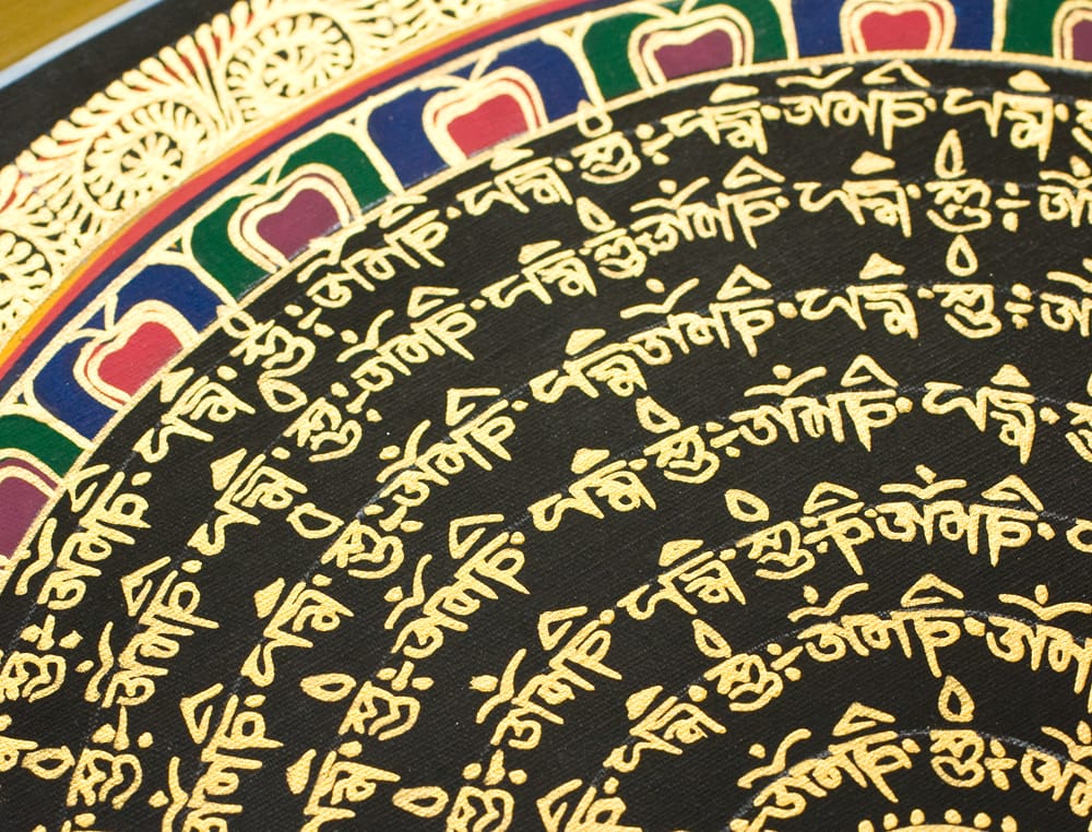 タンカとはチベット仏教の教えを目に見える形にすることでその教えを理解しやすくすることを助けるもの、そしてチベット僧の重要な行いの一つの「瞑想」の手助けをするものです。タンカの図柄には色々なものがありますが、代表的なものにはチベットの高僧であるミラレパを描いたものや、千手観音などの神様を描いたもの、そしてヤントラやマンダラと呼ばれる図形を描いたものがあります。