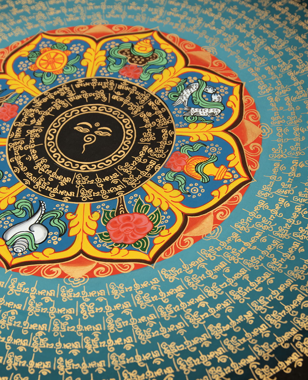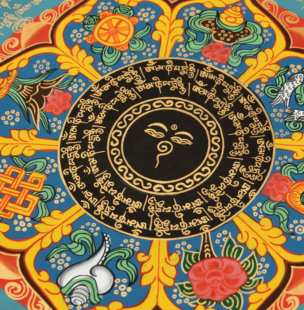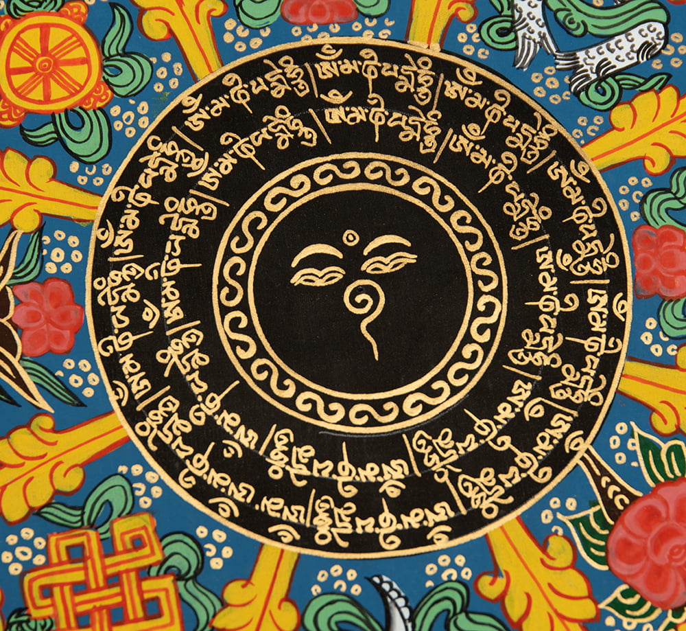 〔一点物〕タンカ - ブッダアイと吉兆図 種子マンダラ[54cm x 54cm] 通販店
