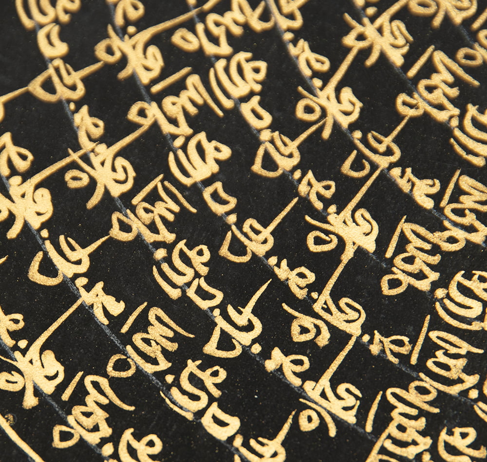 このマンダラは仏を表わす文字を仏教では種子と言うことから、この名がつけられました。諸仏の姿を直接描く代わりに、1つの仏を1つの文字(サンスクリット文字、梵字)で象徴的に表わしています。■タンカとは