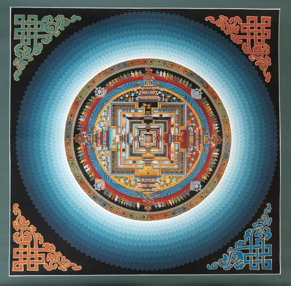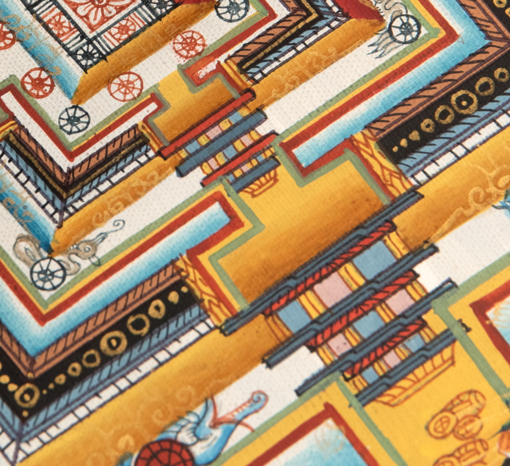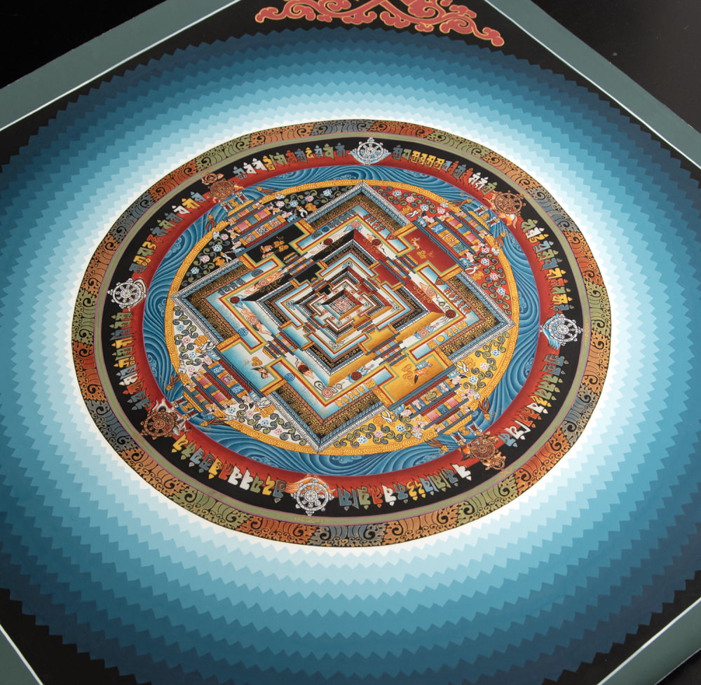 カーラチャクラ・マンダラ(कालचक्र मण्डल, Kalachakra Mandala)は、チベット仏教における「カーラチャクラ(時輪)」の教えを象徴する曼荼羅(マンダラ)です。カーラチャクラは、時間(カーラ)と輪(チャクラ)を意味し、宇宙と個人の関係、時間の流れ、そして悟りに至る道を表現しています。カーラチャクラ・マンダラは、宇宙・人間・悟りを象徴する密教の神聖な図形であり、瞑想・修行の対象となるだけでなく、世界平和の象徴としても重要な意味を持っています。その複雑な構造と深遠な教えにより、カーラチャクラはチベット仏教において最も神秘的で奥深いタントラの一つとされています。