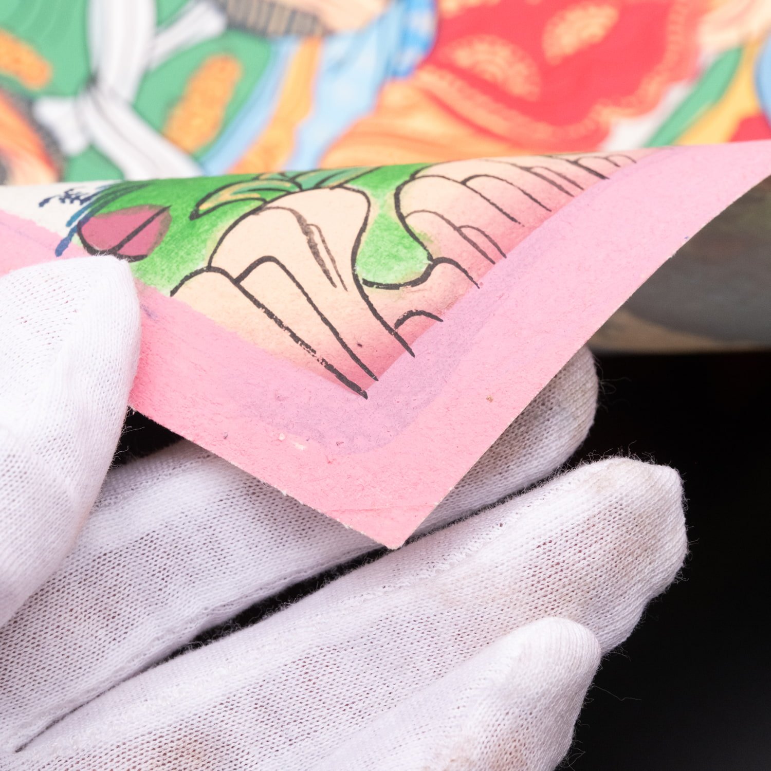 | 備考 | タンカ作成の過程で裏面に軽く絵の具がついていることがございます、手作りゆえの特性になりますのでご了承ください。また、実際に現地のギャラリーや寺院で掲示されていたものは端っこの部分の折れなど、経年を感じさせるものもございます。そのようなお品は特別な一品としてより大切にしていただければ嬉しく思います。 |