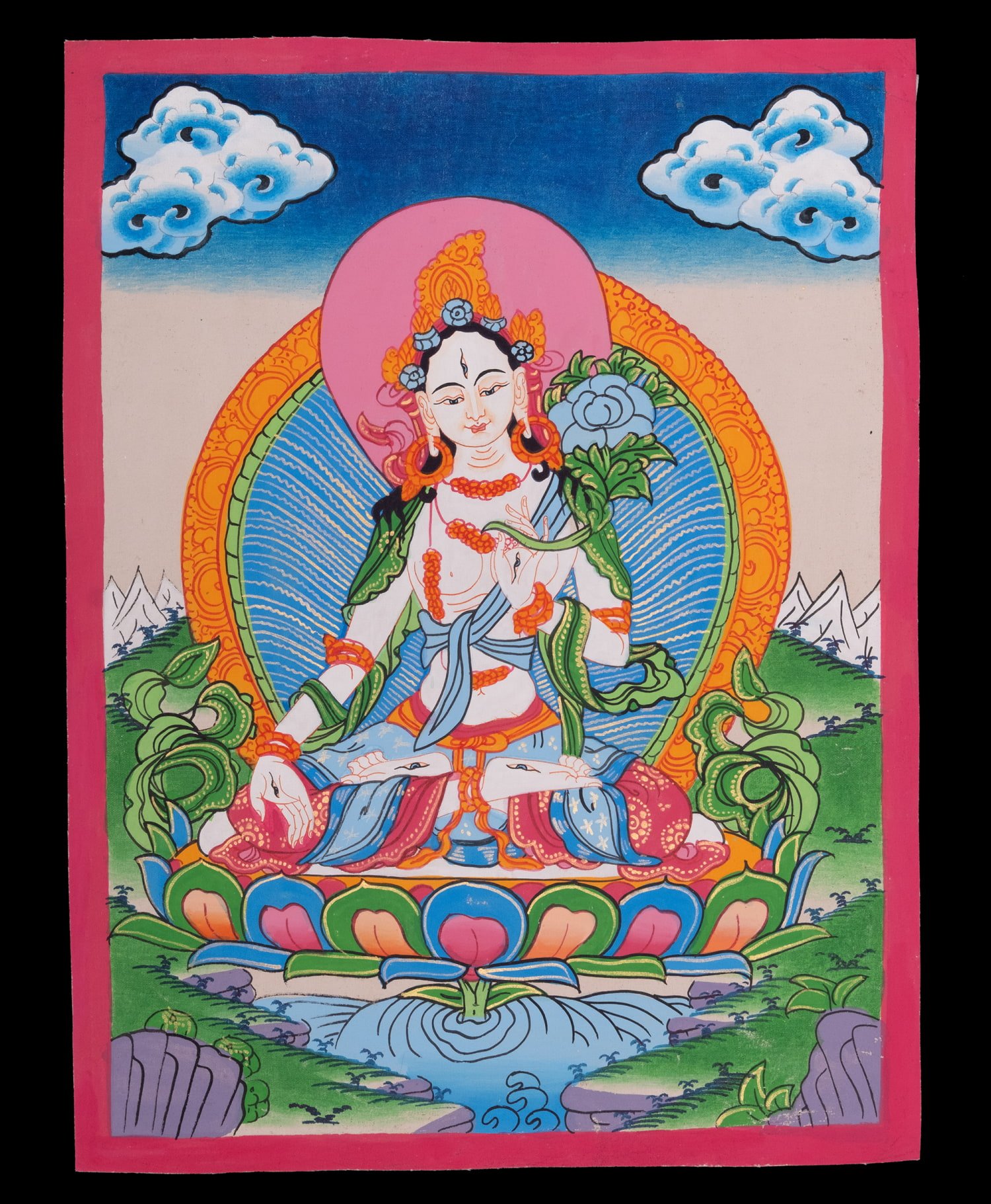 〔一点物〕タンカ - ホワイトターラ[40cm x 30cm]