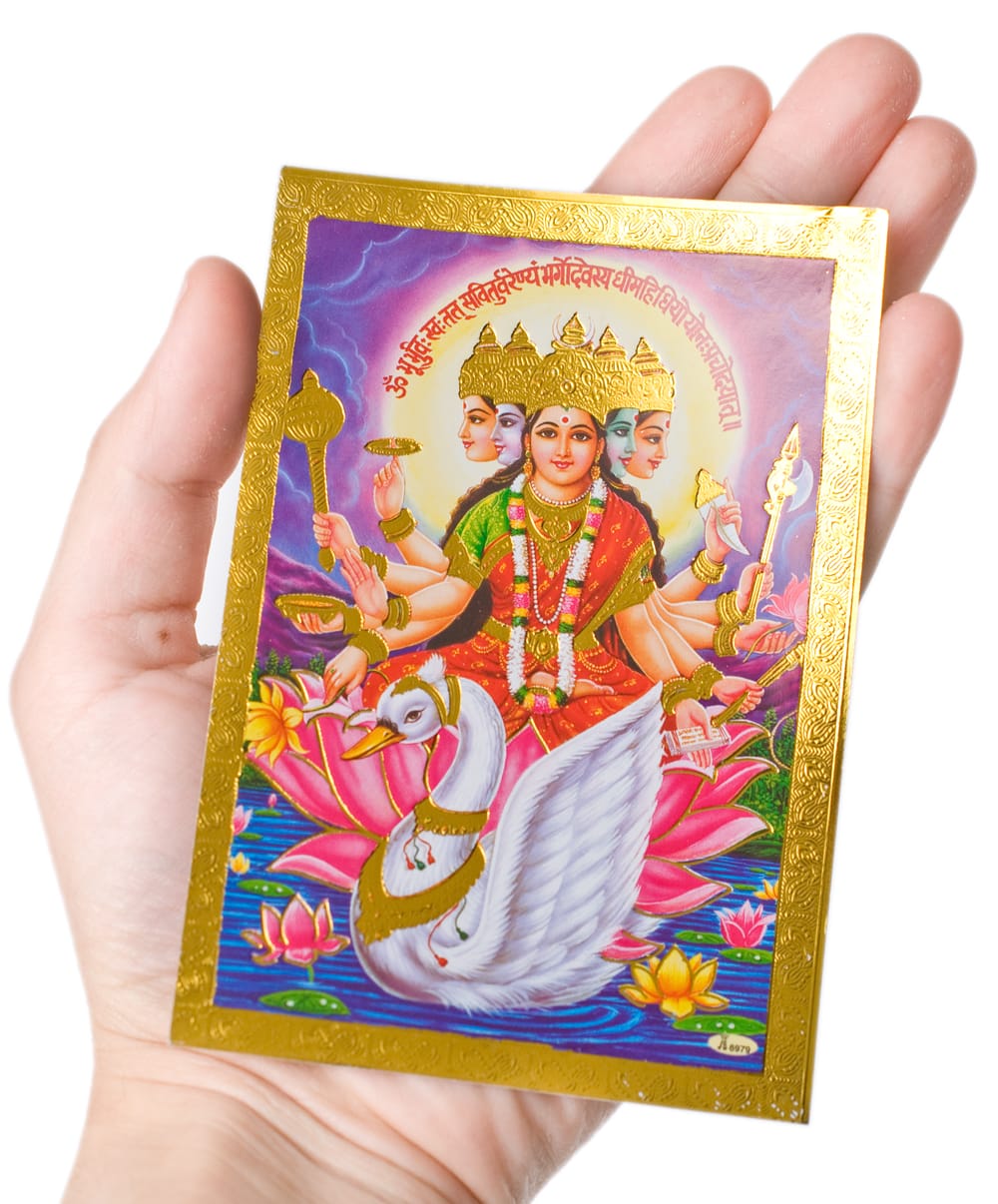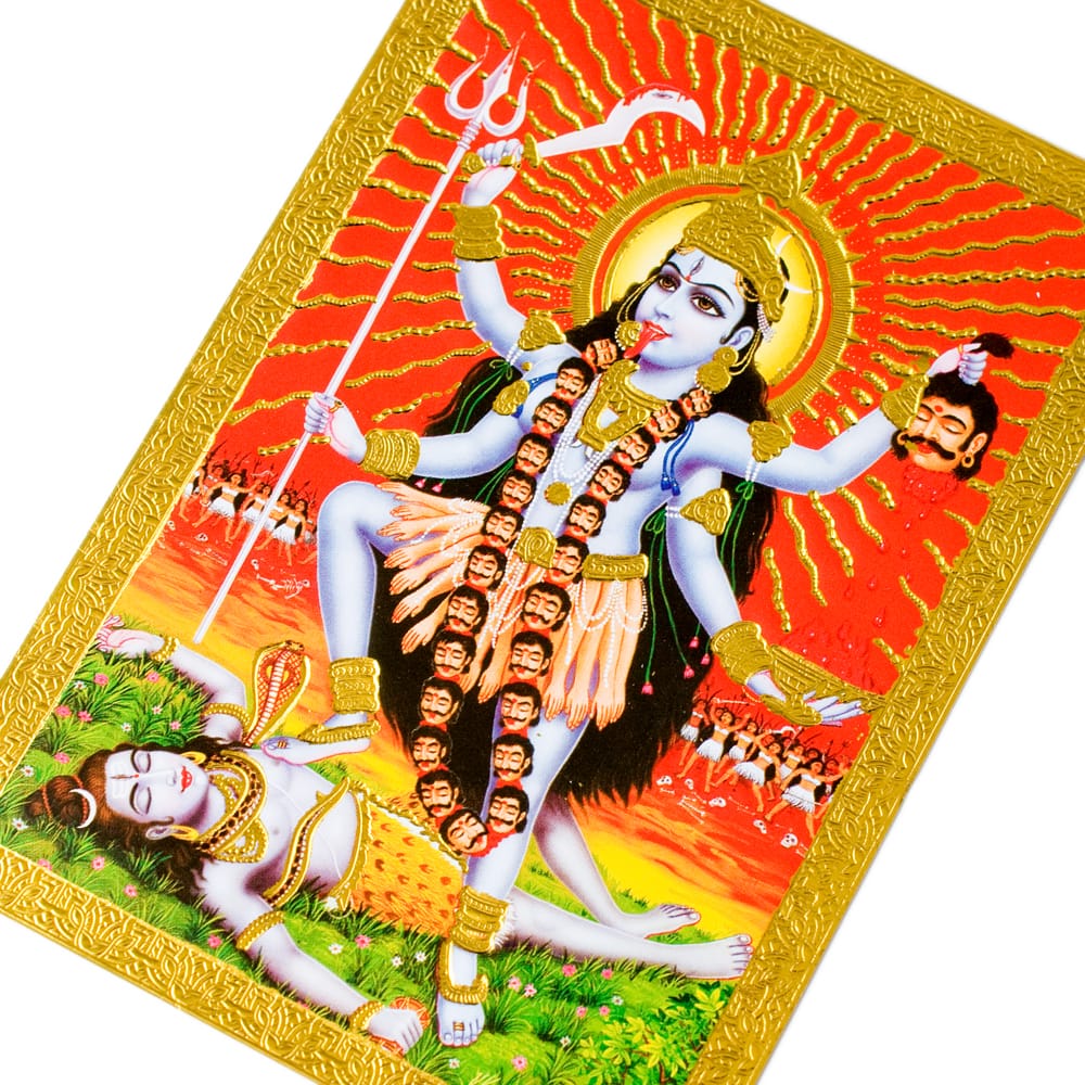 インドから来たポストカードがやってきました。こちらの商品はヒンディー教の神様の色んなシーンを金色のデコレーションにおさめたポストカードです。もちろんインドから来たものなので、ポスターカードの背景の色合い、コントラスト、は非常にインド感を出しています。金色の縁取りには細かな模様が刻まれており非常に眩しい(!)商品になっております。