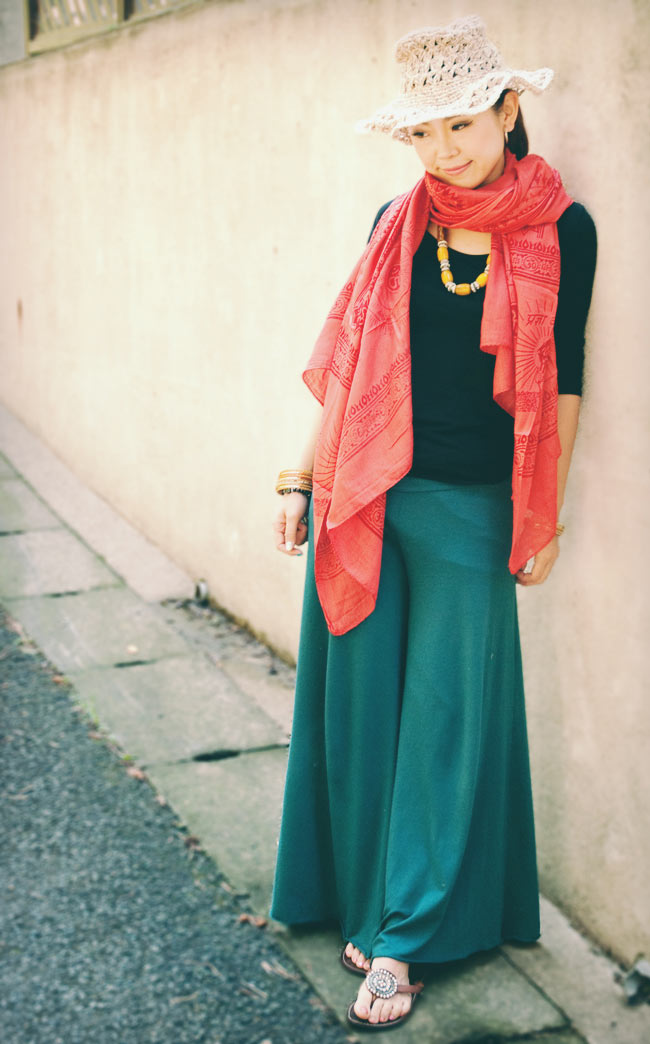やわらかいラムナミは、ひんやり気持ちい肌触り。一度触ると肌身離したくなくなるような感じです。夏は日よけのショールに、冬場はマフラーなどにと使い方は様々。大きさもしっかりとしているので、お部屋の壁飾りなどとするとガラッと雰囲気が変わり、そこはもうインドになりますよ。