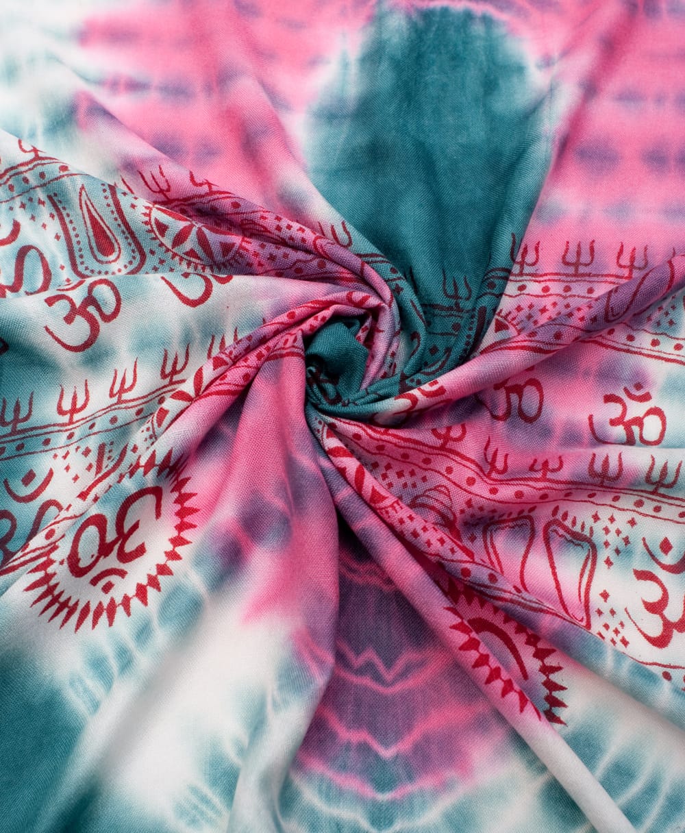 〔195cm*100cm〕ガネーシャ&ヒンドゥー神様のタイダイサイケデリック布 - 青緑×ピンク×黄色系の類似商品