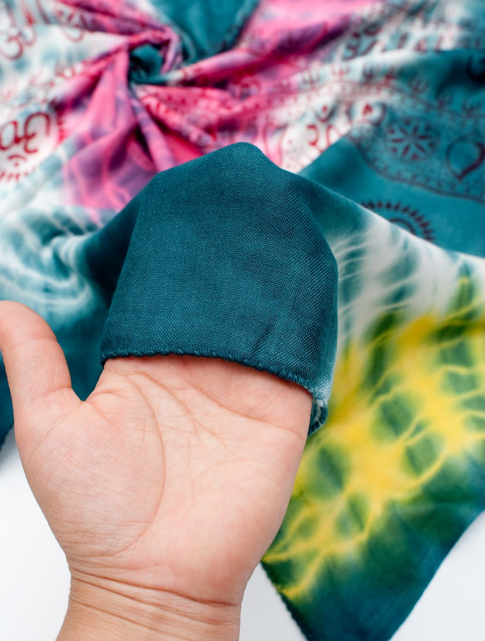 | ご注意 | こちらの商品はハンドメイドで絞り染めされている為、パターンや色合いが写真と異なる場合がございますのでご了承ください。商品タイトルの色合いは主な目安として記載させていただいております。商品の特性上、若干のホツレや色ムラがあることがございます。また、洗濯など水に濡れた際、インド現地で昔ながらの手法で染色されている為、色落ちや色移りする場合がございます。 |