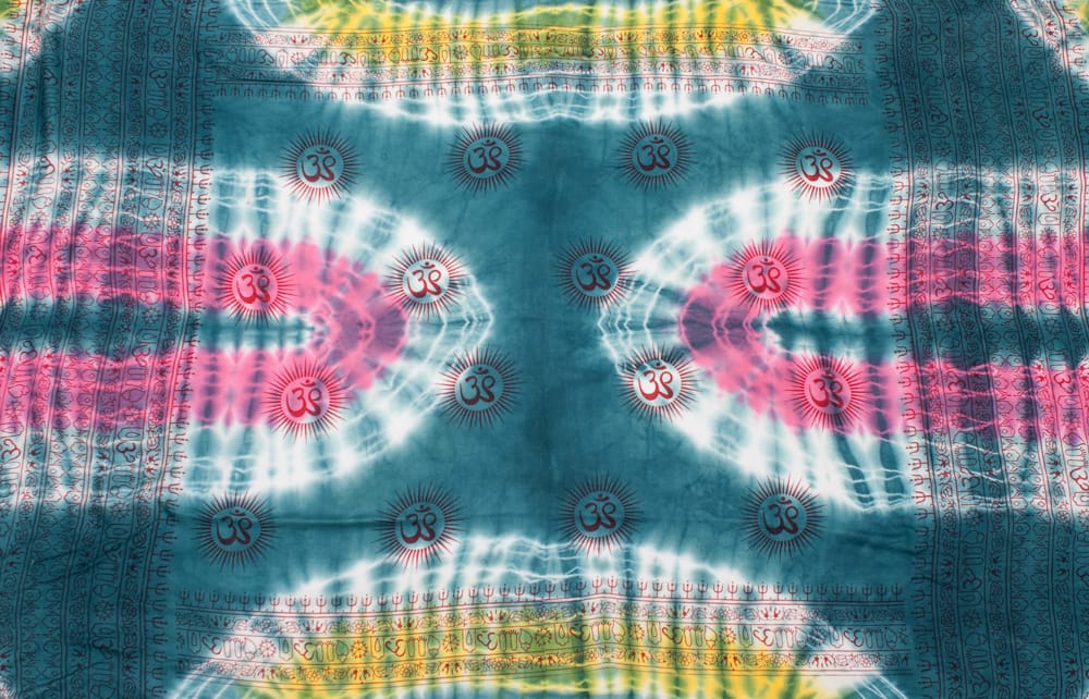 大聖地バラナシのラムナミにタイダイ染めを施した布です。