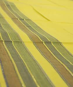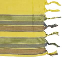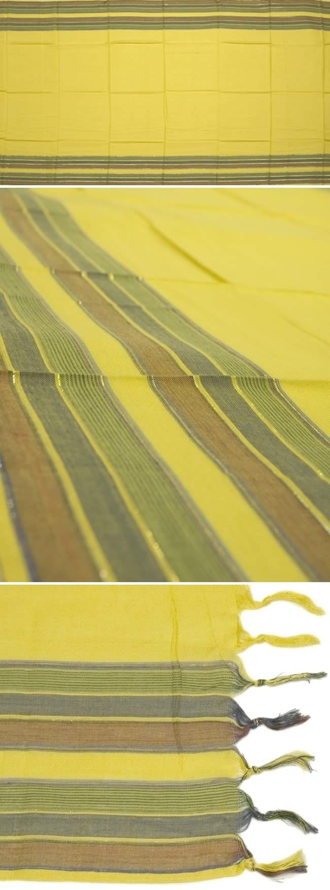 インドの人たちが腰巻きに使用しているおしゃれなコットン製のボーダールンギー。インド綿なので肌触りも良く、金糸の入ったストライプがかわいくて人気。布の端もおしゃれに細かく縛ってあります。